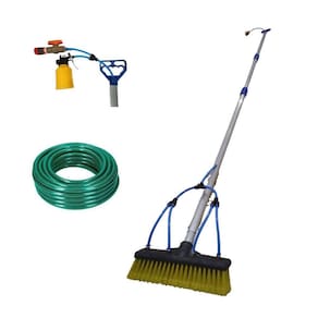 Contém: - vassoura com cerdas exclusivas - mangueira e conectores - cabo telescópico de 4 metros - mangueira de 20m - válvula abre e fecha - dispenser sabão