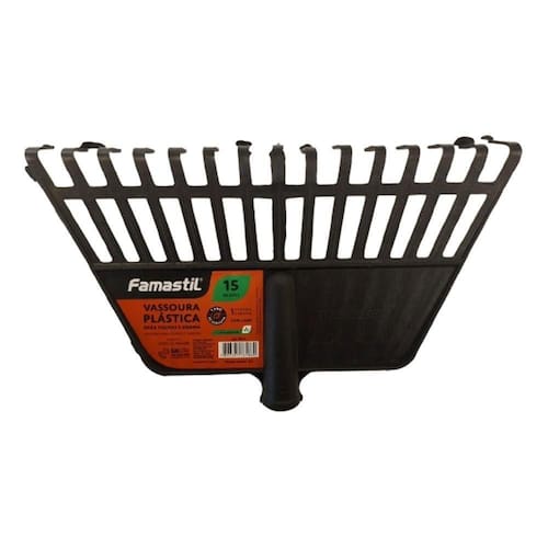 Diferenciais: 15 dentes plásticos, ideais para limpeza em áreas menores. Estrutura leve que facilita o manuseio e reduz o esforço físico. Cor preta discreta e prática para o dia a dia. Produto versátil, indicado para jardins, quintais e demais áreas externas. Resistência adequada para serviços de jardinagem domésticos e profissionais.