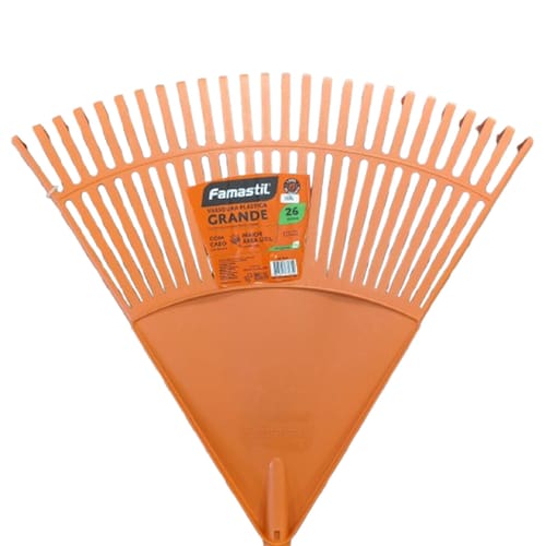 A Vassoura Plástica para Folhas Famastil, na vibrante cor laranja, foi projetada para elevar a eficiência na limpeza de folhas e detritos em quintais, pátios, garagens e áreas externas. Com 26 dentes longos e robustos, oferece cobertura superior, promovendo varrição rápida e eficaz — ideal para espanagem de grama sintética, recolhimento de folhas secas e limpeza de pequenas partículas, sem danificar superfícies delicadas.