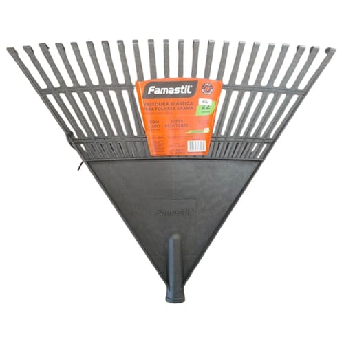 A Vassoura Plástica para Folhas Famastil foi desenvolvida para facilitar a limpeza de folhas, poeira, detritos leves e resíduos de jardinagem em quintais, garagens, pátios e áreas externas. Com 22 dentes longos e robustos, ela garante grande cobertura e eficiência na varrição, permitindo a coleta rápida de resíduos sem danificar gramas, pisos e bordas.