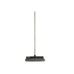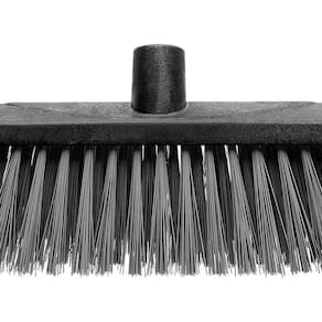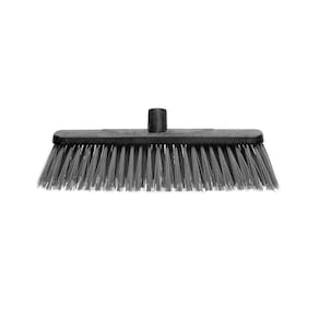 Vassoura de 40 cm com cerdas sintéticas e rígidas. Seu uso é indicado para varredura de sujeiras mais pesadas em pisos externos e pouco regulares.