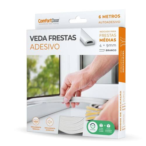 Veda Frestas Adesivo O Veda Frestas Adesivo proporciona alto nível em vedação de frestas de batentes de portas, janelas, esquadrias e armários com rapidez e praticidade. Esta é a solução para quem busca isolamento acústico, amortecimento de batidas, proteção contra a entrada de vento, poeira, insetos, umidade e água. Fácil de instalar, o Veda Frestas Adesivo é ideal para todos os tipos de superfícies e pode ser fracionado de acordo com a necessidade e local de aplicação. A medida de largura desse produto é igual a medida padrão de rebaixo de batente, que é 9mm, sendo assim, só é necessário escolher dentre as três alturas a que melhor se encaixa no tamanho da fresta e a cor que mais combina com a superfície de instalação. VANTAGENS: Isolamento Térmico Isolamento Acústico Evita a entrada de poeira e umidade Evita a passagem de insetos Material: Borracha EPDM Medidas: 4x9 mm Ajuste máximo de corte: Sem restrição Tipos de porta/janela: Qualquer modelo de porta e janela : 1 um ano contra defeitos de fabricação de acordo com os termos de . Instalação: 1 - Retire o Veda Frestas de sua embalagem. 2 - Limpe toda a superfície onde será aplicado o Veda Fresta, verificando se está completamente limpa e seca. 3 - Destacar o rolo em duas partes. 4 - Medir toda a superfície a ser aplicado com o auxílio de uma trena e cortar o Veda Fresta de acordo com as Medidas obtidas. 5 - Remover a proteção do adesivo e aplicar o Veda Fresta na superfície desejada, conforme as imagens abaixo Conteúdo da embalagem: 1 um rolo duplo de borracha autoadesiva com 3 três metros de comprimento 6 m após a sua divisão Ean: 7795332803513