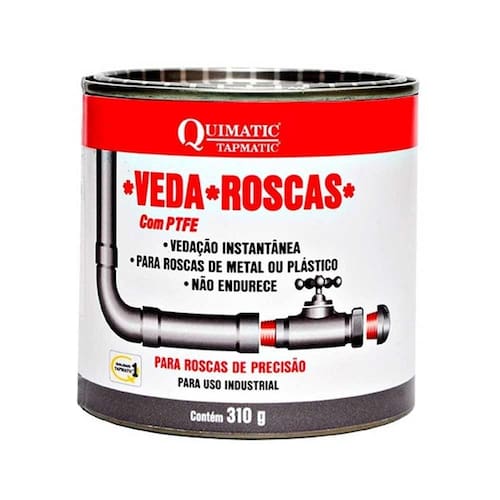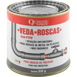 Veda Rosca Liquida 310g Quimatic Ma1 Veda Rosca Liquida 310g Quimatic MA1 - Veda Rosca Líquida 310 gramas Quimatic MA1 Características Gerais do Produto: - Modelo: MA1 - Marca: Quimatic / Tapmatic - Instruções de Uso: Limpe bem a rosca com um pano ou estopa antes da aplicação. Se estiver muito engordurada lave com solução de desengraxante ; se estiver enferrujada faça a decapagem antes e depois lave bem com água antes de aplicar o VEDA ROSCAS - Ideal Para: tubulações de água, ar, gás, LP + GLP, etc - Peso: 310g Garantia: - Sem Garantia
