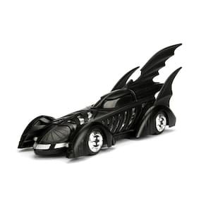 Jada Toys DC Comics Batman Forever Batmóvel e Batman Figura 1:24 - Veículo fundido com boneco preto fosco - Autenticamente licenciado pela DC Comics - Como visto em Batman Forever, o Batmóvel Batman Forever foi tirado diretamente da tela grande e trazido a você em um modelo fundido em escala 1:24 com boneco do Batman de 7 cm. - Feito de materiais duráveis, como 100% metal fundido e pneus de borracha premium. - Nosso método de fundição superior nos permite capturar os detalhes ricos do Batmóvel. - Este modelo premium de molde fundido é essencial para qualquer coleção da DC Comics