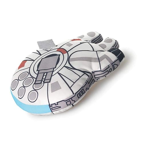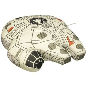 - Esta pelúcia retrata a famosa nave espacial de Han Solo e Chewbacca, a Millennium Falcon.
