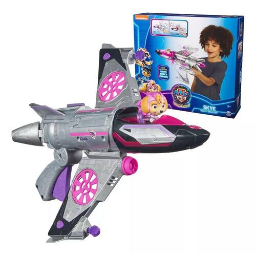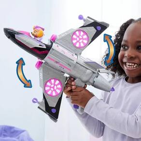 Veículo - Patrulha Canina: Um Filme Superpoderoso - Jato da Skye - Sunny Brinquedos: Junte-se a Skye e a seu jato do filme "Patrulha Canina: Um Filme Superpoderoso" para emocionantes aventuras de resgate! Com um design super elegante, uma emocionante ativação de veículo, dois lançadores de projéteis, efeitos sonoros e música (com luzes piscantes sincronizadas), este luxuoso jato traz toda a ação do filme, direto para sua casa. Vestida com seu uniforme rosa do filme, Skye conta com partes translúcidas. Prenda-a na cabine, pressione e observe suas patas acenderem! Quando chegar a hora de uma missão repleta de ação, segure a alça do jato da Skye e incline-o para cima, para baixo, para a esquerda e para a direita para ativar efeitos sonoros. Em seguida, aperte a alavanca na alça para lançar um movimento de rotação das asas do jato e ouvir mais efeitos sonoros enquanto você decola de uma missão para outra! Quando houver problemas, carregue ambos os lançadores de projéteis e pressione os botões em cada asa para lançar os projéteis para eliminar obstáculos e salvar o dia!
