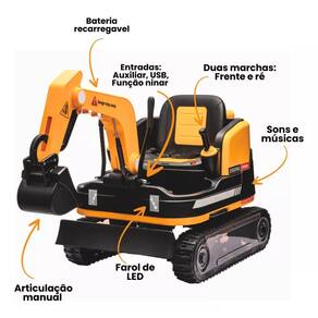 Veículo Elétrico Escavadeira Amarela 12v Zippy Toys - unic - amarelo