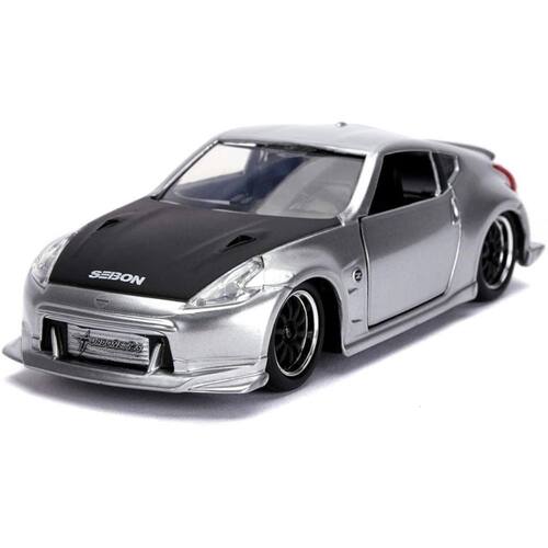 Jada Toys Veículo fundido Fast & Furious 2009 Nissan 370Z escala 1:32, prata - Portas abertas com pneus de borracha de verdade - Estilo externo diretamente do filme - Autenticamente licenciado - Feito de metal fundido de qualidade - Colecione todos!
