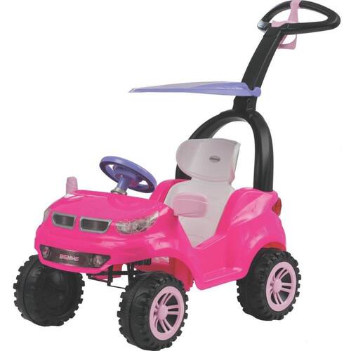 * Cinto de seguranca regulavel de tres pontos.* Porta objetos na parte traveseira e lanterna decorativa.* Haste cporta copo. * Encosto largo c5 posicoes pdescanso.* Volante csom, painel didatico e porta mamadeira.* Farois clentes plasticas.* Pedais cmecanismo de tracao.* Capota removivel.AndadorPedal . A partir de 12 meses Embalagem: UNIDADEEmbalagem: UNIDADE