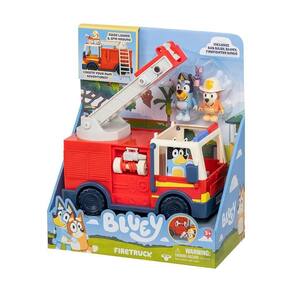 Junte-se a Bluey e Bingo em uma aventura completamente nova com o Caminhão de Bombeiros Bluey! Este veículo repleto de ação possui recursos divertidos para as crianças brincarem. O caminhão de bombeiros vem com 2 figuras, a Bombeira Bingo e Bluey. Ele até inclui um acessório do Bob Bilby que se encaixa na mão do Bluey! O caminhão de bombeiros tem o tamanho ideal para que Bluey e Bingo possam sentar na cabine e passear. Levante a escada embutida e gire-a! Coloque Bingo no topo da escada e mova a mangueira de água para ajudá-la a mirar! Este incrível caminhão de bombeiros também possui uma mangueira retrátil para as crianças puxarem para mais ação. Do outro lado do caminhão, há uma escada removível que simplesmente desliza para fora. Há até uma folha de adesivos para personalizar a brincadeira! As figuras tanto de Bluey quanto de Bingo são articuladas, com braços e corpos móveis, e têm 6cm de altura. As crianças vão adorar recriar alguns dos momentos mais memoráveis do programa com este ótimo brinquedo!