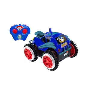 VeÃculo de rÃdio controle com 3 funÃÃes e cambalhota. Utiliza 2 pilhas AA no carro e 2 pilhas AA no controle. Pilhas nÃo inclusas.