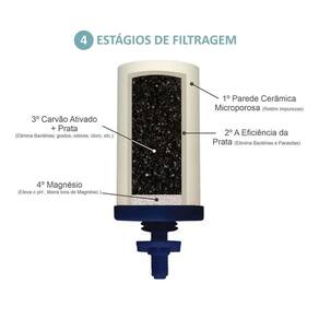 Vela Alcalina com Magnésio Oasis para Filtro de Barro, Acrílico, Purificador de Água Kit com 10 Alcalina com Magnésio Características do Produto: Considerada uma das melhores e mais eficientes velas do mundo Elimina 99,9% das bactérias presentes na água através da Prata , transforma a água da torneira na água ideal para a saúde Pura, Alcalina, Antioxidante com altíssimo poder de Hidratação e Baixa Tensão Superficial. Declorante e esterilizante, com revestimento de prata , aplicado na parte interna da vela, junto com o carvão ativado, trabalham para filtrar e reduzir odores, sabores e o teor de cloro, além de reduzir a presença de bactérias da água. A camada de prata aplicada internamente penetra pelos poros da vela, preservando sua propriedade esterilizante. As velas são compatíveis com todos os filtros por gravidade do mercado. Especificações técnicas: É uma vela que contém em seu interior carvão ativado, um produto de origem vegetal obtido a partir da casca do coco e utilizado mundialmente em sistemas de purificação de água, pois reduz odores, sabores e o teor de cloro presente na água. - Testada e aprovada conforme ensaios realizados de acordo com a norma ABNT NBR 16098:2012 - Utilizado em filtros de barro e acrílico - Retém partículas sólidas mil vezes menores que um grão de areia - Alta durabilidade - Eficiência comprovada - Retém Partículas = 5 a 15 micra - Reduz o Cloro = 75% - Retira gostos, odores e reduz o cloro livre - Retém micro partículas sólidas - Esterilizante Elimina Bactérias - Reduz metais pesados, agrotóxicos, adubos químicos e trihalometanos THMs - Eleva o pH da água para acima de 8.0 podendo chegar a 9,5 de acordo com a água de entrada - Aumenta a concentração de íons de hidroxila OH- na água baixando o ORP potencial de oxidação redução Marca: Oasis Modelo: Alcalina com Magnésio Cor: Branco Capacidade L : 1 litro/h Material: Cerâmica Branca, Carvão Ativado, Prata , Partículas de Magnésio, Aço Inox, PS, PVC e HotMelt. BPA Free Dimensões: 12,5cm x 6cm Peso: 280 gr Contém: anéis de silicone e arruela de vedação : 12 meses por defeito de fabricação Validade na utilização: até 06 meses ou antes dependendo da qualidade da água filtrada Higienização: Somente água e uma esponja limpa