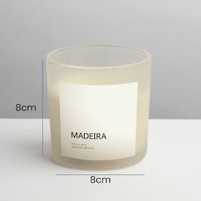 E, para completar a experiência, cada vela vem em um elegante pote de vidro e é acompanhada por um saquinho de algodão cru.
