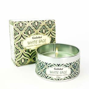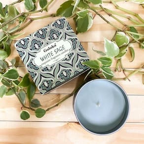 Vela Aromática Lata Indiana Goloka Vegano - Escolha o Aroma Cor: White Sage 70gr Vegano Vela Aromática Lata Indiana Goloka Vegano - Escolha o Aroma