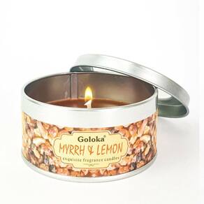 Vela Aromática Lata Indiana Goloka Vegano - Escolha o Aroma Cor: Mirra e Limão Vela Aromática Lata Indiana Goloka Vegano - Escolha o Aroma