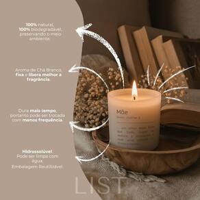 Longa Duração: Queima até 50% a mais que as velas de parafina.
