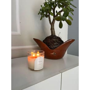 Composta por um blend de ceras vegetais e pavio de algodão, nossa vela é sustentável possui uma queima limpa.