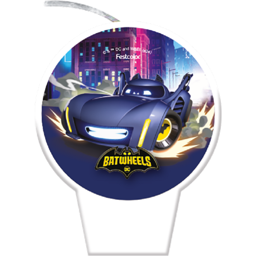 Vela Adesivada Batwheels Festcolor. Prepare-se para salvar a cidade de Gotham City sobre rodas com BatWheels! Conte com Batman, Batgirl, Robin e seus veículos super customizados com vida própria para combater os vilões e tornar sua festa mais divertida e especial. Vela de alta qualidade e ótima definição, utilize no seu bolo para compor ainda mais em sua decoração e deixar esse momento mais especial.