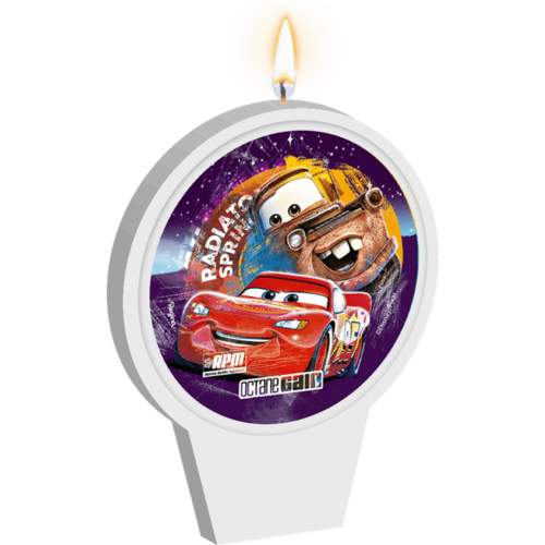 Vela Adesivada Carros Regina. Relâmpago McQueen passou da linha de chegada e vai comemorar junto com você! Transforme sua festa em um encontro dos vencedores com o tema do Carros. Vela de alta qualidade e ótima definição, utilize no seu bolo para compor ainda mais em sua decoração e deixar esse momento mais especial.