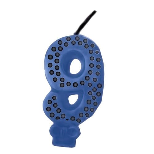 Vela de Aniversário Azul com Preto N9 - Extra FestasVela de Aniversário Poá Azul N9 é feita de parafina, com cores fortes, perfeita para deixar sua decoração e seu bolo ainda mais bonito e divertido! Contando com o formato do número 9, a vela ainda apaga e acende!
