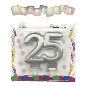 Contém: 01 Vela de Aniversário Números na cor Prata para 25 Anos
