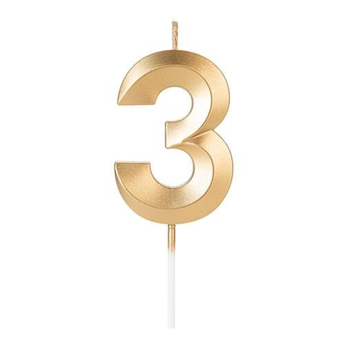 Vela Design Dourada Número 3 Silver FestaAltura:15cm