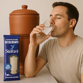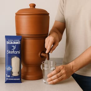 Feito de material cerâmico microporoso que filtra a água por gravidade, sem adição de produtos químicos, reduzindo impurezas e retendo partículas sólidas, proporcionando uma água saudável e livre de microorganismos;