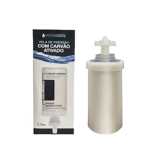Vela Filtro Oásis Carvão Ativado Para Torneira Vela Universal para filtros Compátivel com qualquer marca ou modelo Carvão ativado Dupla ação A vela com Carvão Ativado Oasis é um componente essencial para filtros de água . Ela é projetada para filtrar a água por gravidade, sem a necessidade de adição de produtos químicos. Marca: Não Informado