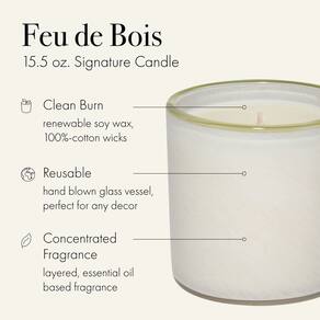 - Perfume – Feu de Bois evoca pinheiro fresco caindo em cachos de sândalo e raro cedro da Virgínia. Couro esfumaçado, olíbano e nuances de baunilha são tranquilos e reconfortantes.