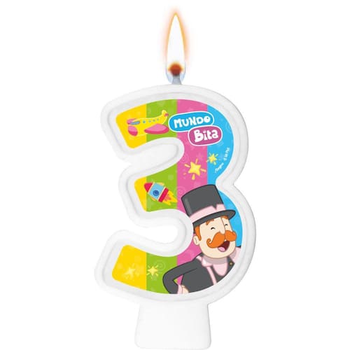 Ilumine a celebração com a Vela de Aniversário Plana Mundo Bita Número 3!