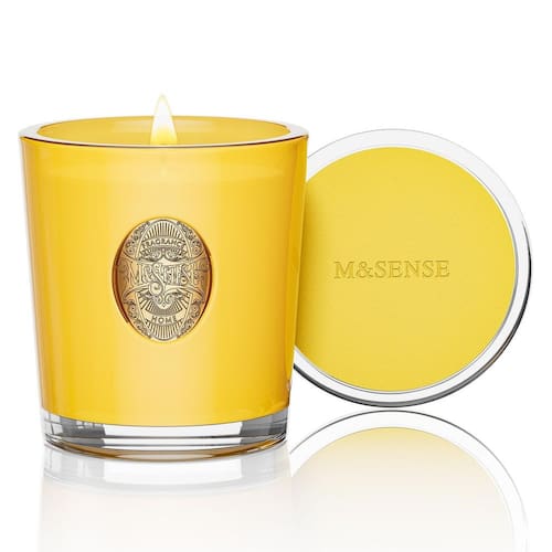M&SENSE Vela de soja natural | Amarelo limão | Queima de 290 g, 55H | Vela perfumada de luxo para relaxamento, presente, decoração de casa | para quarto, escritório, festa