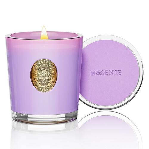 M&SENSE Vela de soja natural | Flor lilás roxa | Queima de 290 g, 55H | Vela perfumada de luxo para relaxamento, presente, decoração de casa | para quarto, escritório, festa