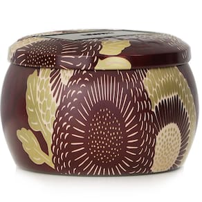 Uma vela de estanho decorativa com aroma celestial Apresenta uma mistura exclusiva de cera de coco e mechas 100% naturais Ilumina seu espaço com uma fragrância suave e encantadora. Armazenada em uma lata ornamentada com cores fortes que percorrem os designs de inspiração japonesa Possui uma tampa que protege a vela da poeira e é perfeita para lembranças quando ela termina de queimar. O tempo de queima é de aproximadamente 25 horas Dimensões: 2,99 “P x 1,93" H Feito à mão nos EUA. Livre de ftalatos, parabenos, sulfatos e testes em animais Cuidado: queime em uma superfície resistente ao calor. Não deixe cair corpos estranhos ou aparas de pavio na vela. Queime em uma área aberta, longe de correntes de ar. Mantenha a vela acesa à vista. Mantenha fora do alcance de crianças e animais de estimação