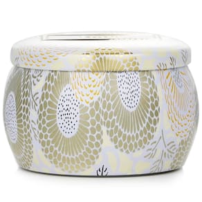 Uma vela de estanho decorativa com aroma celestial Apresenta uma mistura exclusiva de cera de coco e mechas 100% is Ilumina seu espaço com uma fragrância suave e encantadora. Armazenada em uma lata ornamentada com cores fortes que percorrem os designs de inspiração japonesa Possui uma tampa que protege a vela da poeira e é perfeita para lembranças quando ela termina de queimar. O tempo de queima é de aproximadamente 25 horas Dimensões: 2,99 “P x 1,93" H Feito à mão nos EUA. Livre de ftalatos, parabenos, sulfatos e testes em animais Cuidado: queime em uma superfície resistente ao calor. Não deixe cair corpos estranhos ou aparas de pavio na vela. Queime em uma área aberta, longe de correntes de ar. Mantenha a vela acesa à vista. Mantenha fora do alcance de crianças e animais de estimação