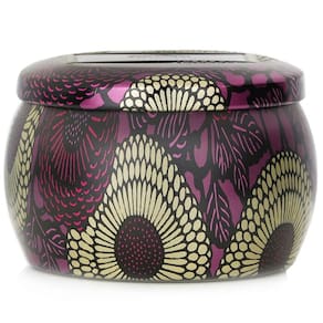 Uma vela de estanho decorativa com aroma celestial Apresenta uma mistura exclusiva de cera de coco e mechas 100% is Ilumina seu espaço com uma fragrância suave e encantadora. Armazenada em uma lata ornamentada com cores fortes que percorrem os designs de inspiração japonesa Possui uma tampa que protege a vela da poeira e é perfeita para lembranças quando ela termina de queimar. O tempo de queima é de aproximadamente 25 horas Dimensões: 2,99 “P x 1,93" H Feito à mão nos EUA. Livre de ftalatos, parabenos, sulfatos e testes em animais Cuidado: queime em uma superfície resistente ao calor. Não deixe cair corpos estranhos ou aparas de pavio na vela. Queime em uma área aberta, longe de correntes de ar. Mantenha a vela acesa à vista. Mantenha fora do alcance de crianças e animais de estimação