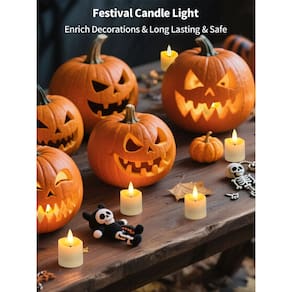 - VELAS DE PLÁSTICO: Velas elétricas com design de borda e cintilação realista. Estas velas de chá são livres de chamas, inodoras e sem cera de gotejamento, velas cintilantes mais seguras para famílias com animais de estimação ou crianças pequenas.