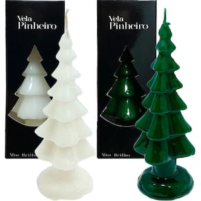 Velas Decoração Pinheiro Natalino Verde Branco 20cm Kit 2pçs -