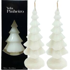 Velas Decorativas Natalino Pinheiro Branco De 20cm Kit 2pçs -