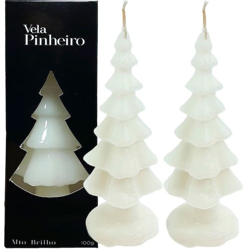 2 Velas decorativa de natal estilo pinheiro branco de 20cm;