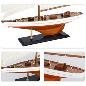 Adicione um toque de história náutica e elegância ao seu espaço com a impressionante réplica do Columbia, o icônico vencedor da Copa América de 1901. Esta peça exclusiva da marca NAUTIMALL é uma verdadeira obra de arte, meticulosamente elaborada para capturar a essência deste lendário iate à vela.