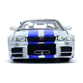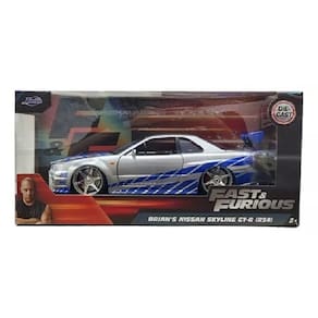 e você é apaixonado pela franquia Velozes e Furiosos, não pode deixar de ter o icônico Nissan Skyline GT-R (R34) de Brian O'Conner, uma réplica incrível e detalhada produzida pela renomada marca Jada Toys. Esse modelo em escala 1:24 é perfeito para colecionadores exigentes e fãs que desejam reviver toda a emoção do cinema em suas mãos! miniatura possui rodas de borracha que permitem movimento livre, além de detalhes interiores impressionantes e portas que se abrem, proporcionando uma experiência realista. É um item colecionável, recomendado para maiores de 08 anos, e possui certificação de segurança do Miniatura com alto nível de detalhamento externo e interno.Feita em metal com detalhes em plástico, pintura automotiva e pneus de borracha.