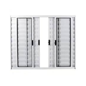Veneziana 120x120 6 Folhas – Alumínio Branco – Linha 18 Modular Janela do tipo Veneziana com 2 folhas veneziana fixas e 2 folhas veneziana móveis (de correr) + 2 folhas de vidro móveis (de correr). Fecho central. Já vem com vidro incluso e pronta para instalar. Não enferruja. De fabricação própria.