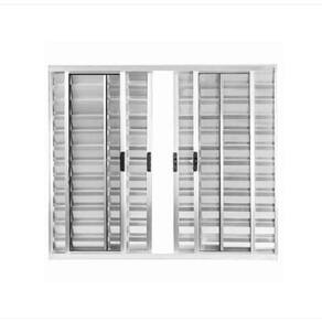 Veneziana 120x120 6 Folhas – Alumínio Brilhante – Linha 18 Modular Janela do tipo Veneziana com 2 folhas veneziana fixas e 2 folhas veneziana móveis (de correr) + 2 folhas de vidro móveis (de correr). Fecho central. Já vem com vidro incluso e pronta para instalar. Não enferruja. De fabricação própria.