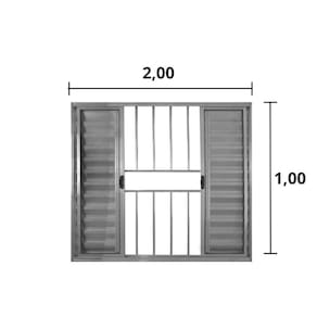 Veneziana 6 folhas com grade/sem grade, possui duas folhas móveis com veneziana, duas folhas movel sendo de vidro e duas folhas fixas.