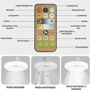 Utilize como quiser: Somente Luz Somente Ventilador Luz + Ventilador