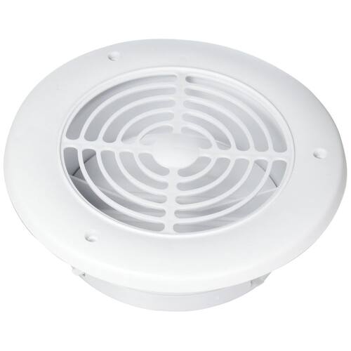 Material: Plástico. Para ventilación de ventiladores de cocina y baño. Expulsa humedad y olores hacia el exterior. Diseño perfil bajo de montaje empotrado, fácil de montar bajo el alero. Diseñado con regulador de mariposa para máximo flujo de aire y conservación de energía. Se adapta a conductos de escape redondos de 4" y 6". Altura de la unidad: 10.8 cm, largo: 21.6 cm, ancho: 21.6 cm. - Se adapta a conductos de escape redondos de 4" y 6" - Color: Blanco - Para ventiladores de cocina y baño - Conducto de escape diseñado con regulador de mariposa para máximo flujo de aire y conservación de energía