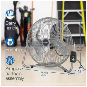 3 Velocidades poderosas torna este ventilador ideal para a garagem, loja, sótão ou em qualquer outro lugar onde você precise de um ventilador de alta velocidade. O motor potente e as pás do ventilador de metal fornecem uma brisa refrescante para o ambiente. Cabeça giratória para direcionar o fluxo e a circulação do ar permite que você direcione o ar em alta velocidade para cima, para baixo ou em qualquer lugar, tornando este ventilador ideal para resfriamento ou ventilação de uma área. QuickMount para fácil conversão de piso para parede basta montar o suporte incluído na parede e converter facilmente seu ventilador de piso em ventilador de parede. O suporte do ventilador é preso diretamente ao suporte e em segundos você tem um ventilador montado na parede. Construído para durar com uma gaiola de ventilador de metal e suporte, este ventilador é forte o suficiente para durar em ambientes de trabalho, mas adequado para uso em toda a casa graças às almofadas de borracha embutidas no suporte do ventilador. Montagem Simples Sem Ferramentas significa que você terá seu ventilador montado rapidamente. Basta seguir as instruções incluídas para montar o ventilador com o suporte do ventilador e pronto. A tecnologia de fusível de segurança patenteada do plug azul O Ventilador de alta velocidade de 51cm da Lasko com QuickMount apresenta 3 velocidades poderosas com pás de metal para fornecer o máximo de movimento do ar. QuickMount permite que você converta facilmente do uso da parede para o chão. Os recursos adicionais incluem QuickMount para fácil conversão de piso para parede. Pivôs para direcionar o fluxo de ar e circulação. 3 velocidades potentes. Alça de transporte integrada. Almofadas de borracha para proteger as superfícies. Montagem simples sem ferramentas Marca: Não Informado