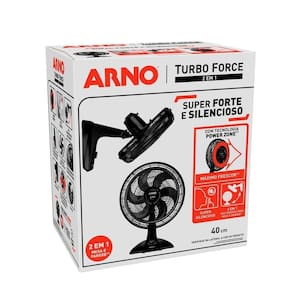 Descrição e ficha técnica Código kg3c9f855a Para o verão ou dias quentes, nada melhor que uma brisa fresca para refrescar, o Ventilador 2 em1 VF42 Turbo Force da Arno Preto deixa os ambientes da sua casa muito mais agradáveis, refrescantes e silenciosos. Este produto é perfeito para qualquer tipo de ambiente pois possui 6 pás para um potente fluxo de ar, inclinação acionada por um botão lateral, grades aerodinâmicas e seguras para crianças, 3 velocidades oscilação na horizontal e na vertical, 40cm de diâmetro e uma oscilação horizontal de 80 graus para uma ótima distribuição de ar. Apresenta tecnologia Power Zone, uma área concentrada que garante o máximo de vento direcionado, oferecendo performance superior e controle para que você não se preocupe com mais nada e pare de sofrer com o calor. Para dias mais refrescantes com os Ventiladores da Arno! Ficha Técnica Marca Arno Referência 2720016835_110 Modelo VF42 Linha Turbo Force Tipo 2 em 1 Velocidades 3 Quantidade de Pás 6 Diâmetro 40cm Potência 126W Acessórios Silencioso, Oscilação Horizontal e Vertical Voltagem 110V Tipo de Tomada 10A Consumo Aproximado de Energia 3,84kW/h Material Polipropileno Cor Preto Certificado Homologado pela Inmetro Número 001693/2022 Peso do Produto 2,9kg Peso do Produto com Embalagem 4,1kg Dimensões do Produto Largura: 48,6cm Altura: 64,7cm Profundidade: 35,3cm Dimensões do Produto com Embalagem Largura: 48,6cm Altura: 64,7cm Profundidade: 35,3cm Prazo de Garantia 02 Anos (3 meses de garantia legal e mais 21 meses de garantia especial concedida pelo fabricante) Conteúdo da Embalagem 1 Ventilador Garantia do vendedor: 7 dias