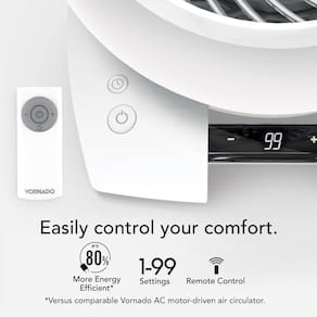 - Ação potente de vórtice — experimente o poder de resfriamento superior da tecnologia de circulação de ar Vortex exclusiva da Vornado. Este ventilador com eficiência energética possui um motor CC sem escovas que garante um fluxo de ar ideal, movendo o ar de forma eficiente em toda a sua sala para conforto em toda a sala.