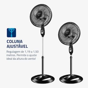 COLUNA AJUSTÁVEL: Possui regulagem de 1,19 a 1,50 metros, permitindo o ajuste ideal da altura do vento.